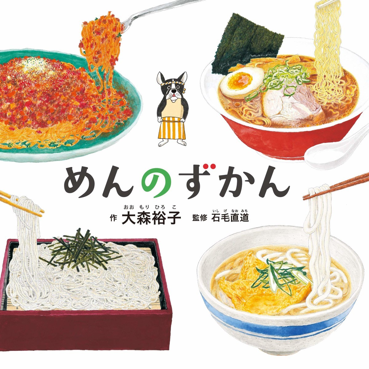 「へい、いらっしゃい!麺専門フードコート「めんパークわんこ」へようこそ。ラーメン、パスタ、そば、うどん…おいしそうな麺がページいっぱいにずらり。大ヒット『おすしのずかん』『パンのずかん』に続く、大森裕子さんの「コドモエのずかん」シリーズ第3弾は、「めん」のすべて!」そのエッセンスを紹介しよう。