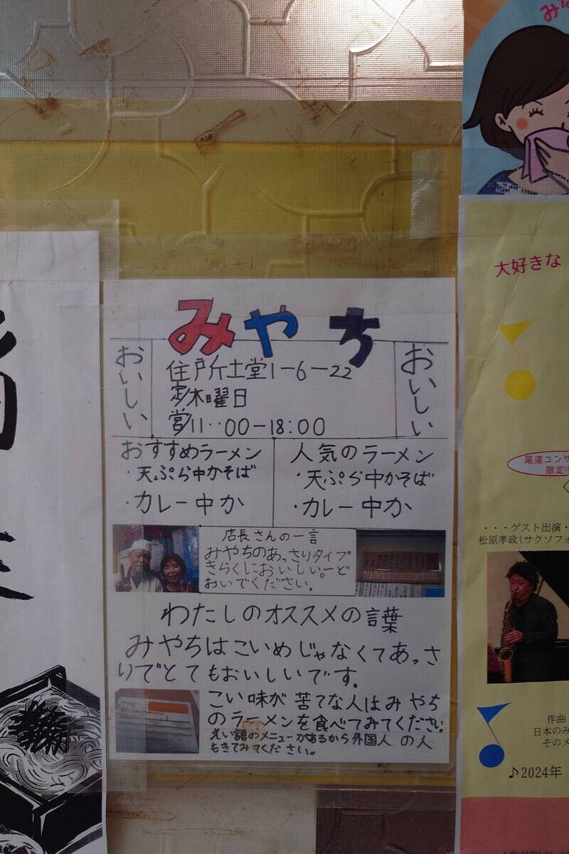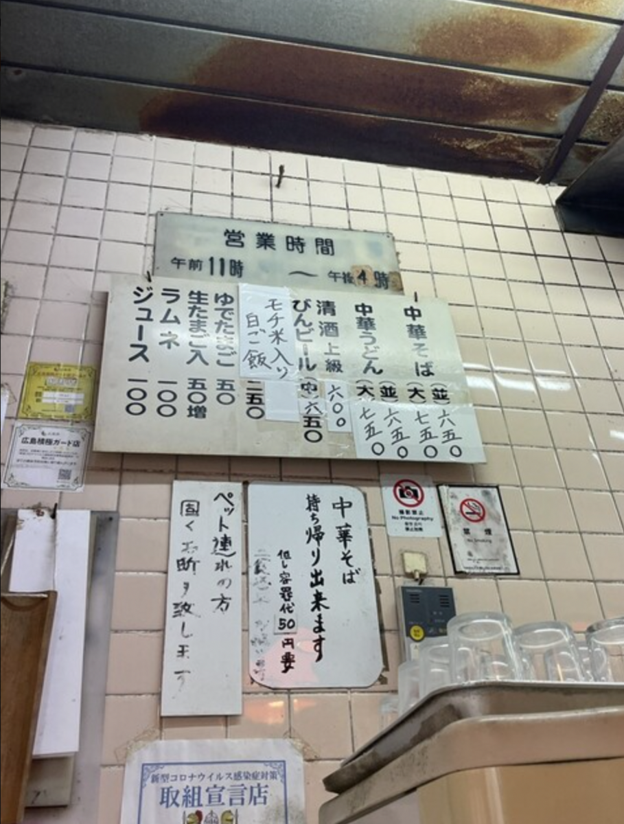 ご主人が身体をこわして半年休業していたとのこと。「天ぷら」中華だって。今日は「天ぷら」はないって。それにしても、尾道って、ラーメンもそばもうどんも一緒なんだね。